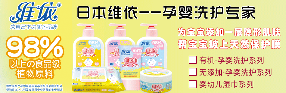 品牌名稱:維依 主營產(chǎn)品:維依嬰幼用品誠邀加盟 品牌特色:天然 健康 安全